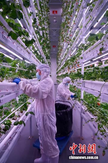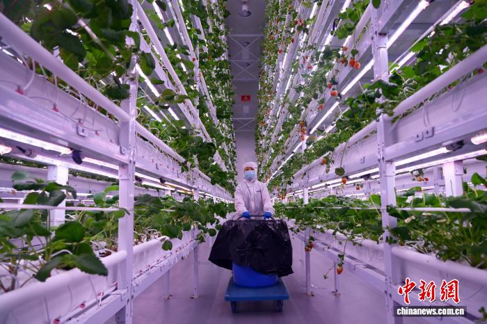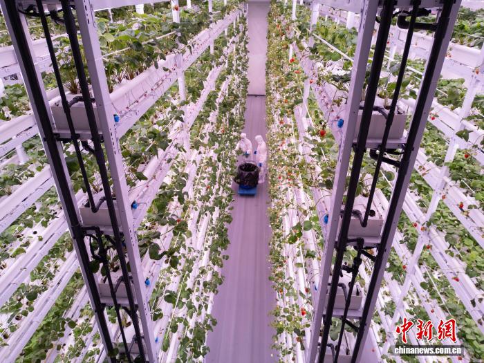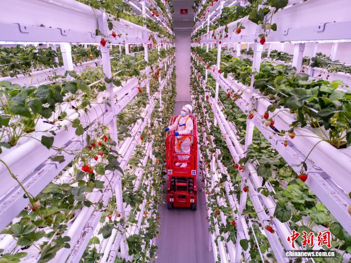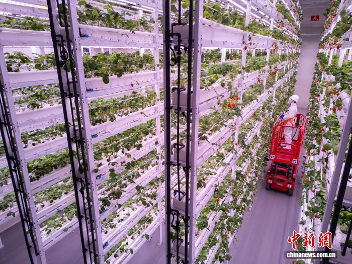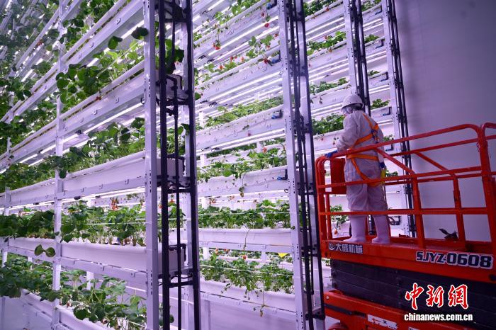 今日正在4川省成城市暖江区中农·超等动物工场内乱,任务职员操纵笔直起落机停止草莓管护功课。中新社记者 弛浪 摄11月4日,正在4川省成城市暖江区中农·超等动物工场内乱,任务职员停止草莓管护功课。中新社记者 弛浪 摄
